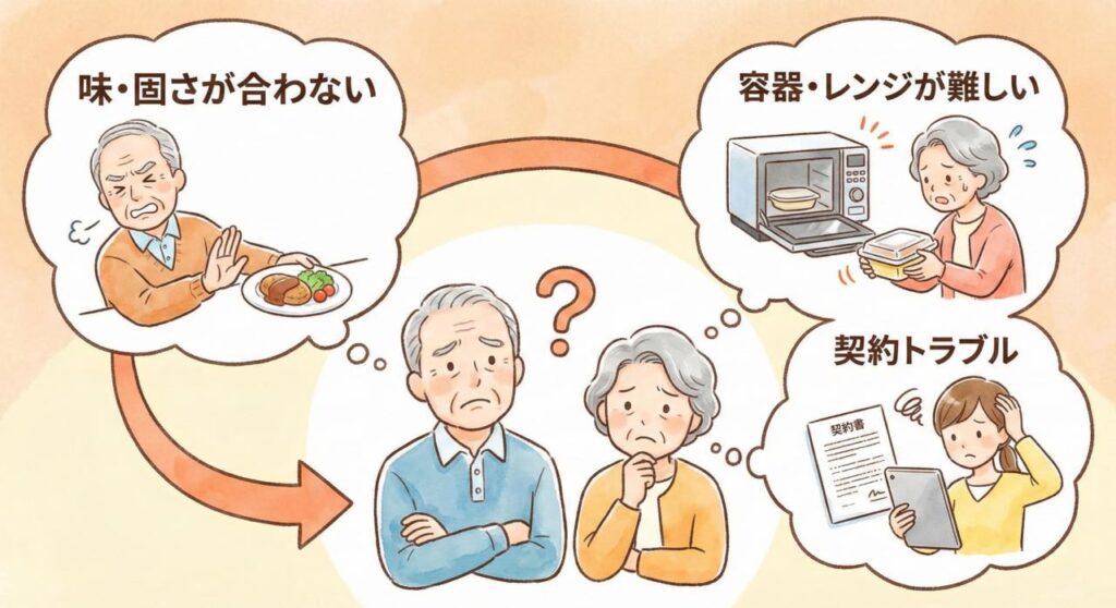 結論から言うと、高齢者向け宅配弁当での失敗は、大きく分けて以下の3つのパターンに集約されます。