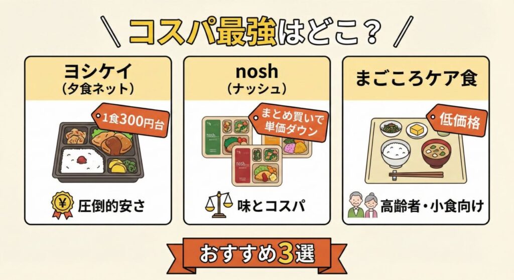 コスパ最強はどこ?節約派におすすめの安い宅食サービス3選